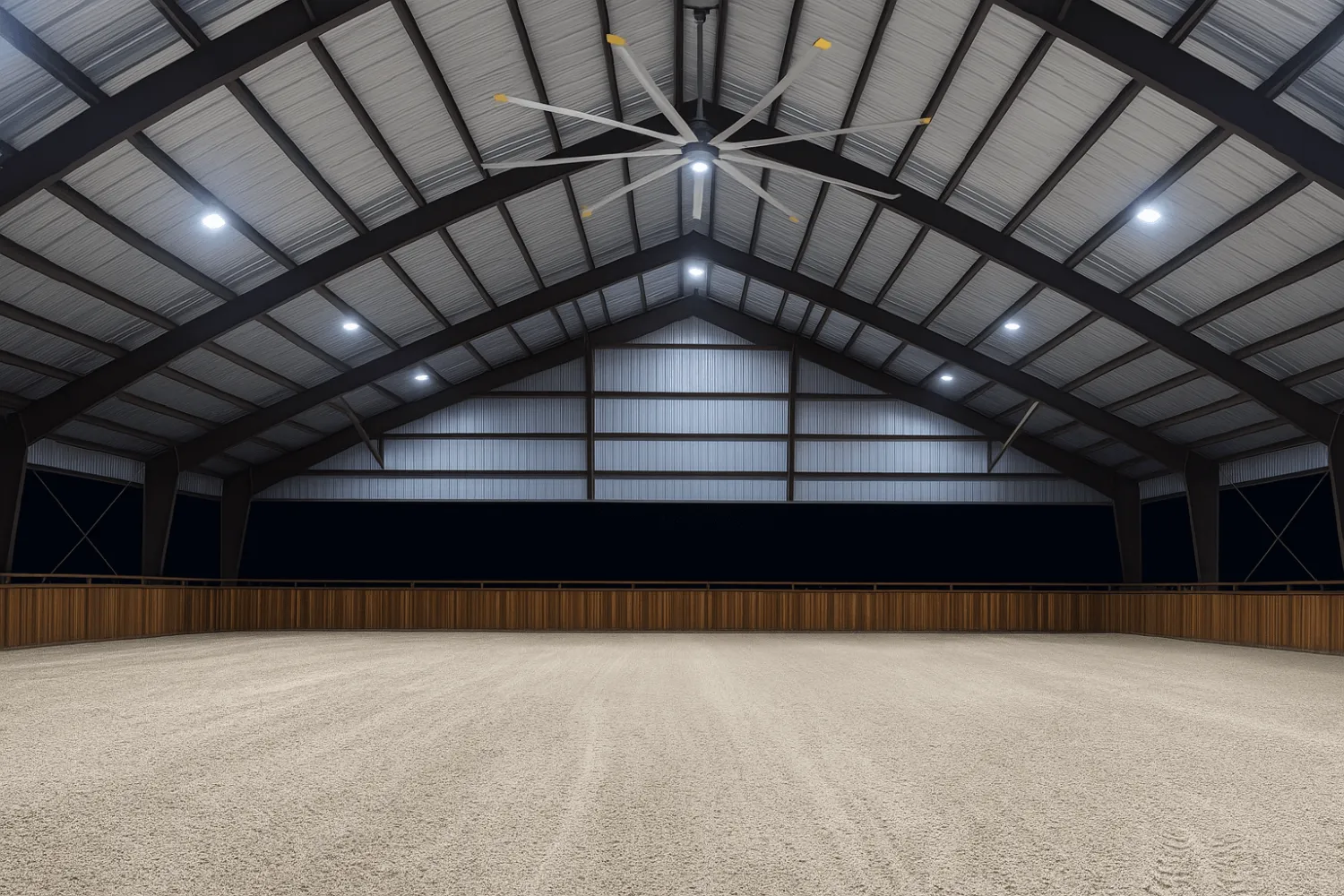 Open or enclosed riding arenas built with proper drainage, sturdy framing, and tailored layouts for training or performance.